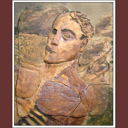 Clay tile on Oil paint/panel